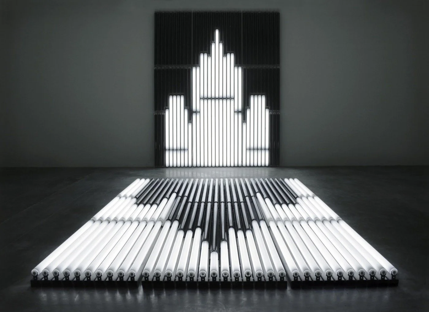 This is first large scale project made with Andrei Molodkin. We had to develop numerous new fabrication techniques as all elements of the 2 sculptures are custom designed and produced, from the steel structure, the polycarbonate tubes and hangings to the electronics and lighting devices. All technologies developped for New Architecton led the path to future artworks like Transformer No.M208.
